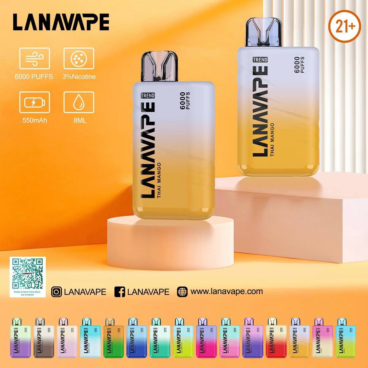 The Lana Trend 6000 Puffs Disposable Vape Powered by a 550mAh battery, the Lana Trend 6000 Puffs goes the extra mile, offering an impressive 6000 puffs on a single charge.